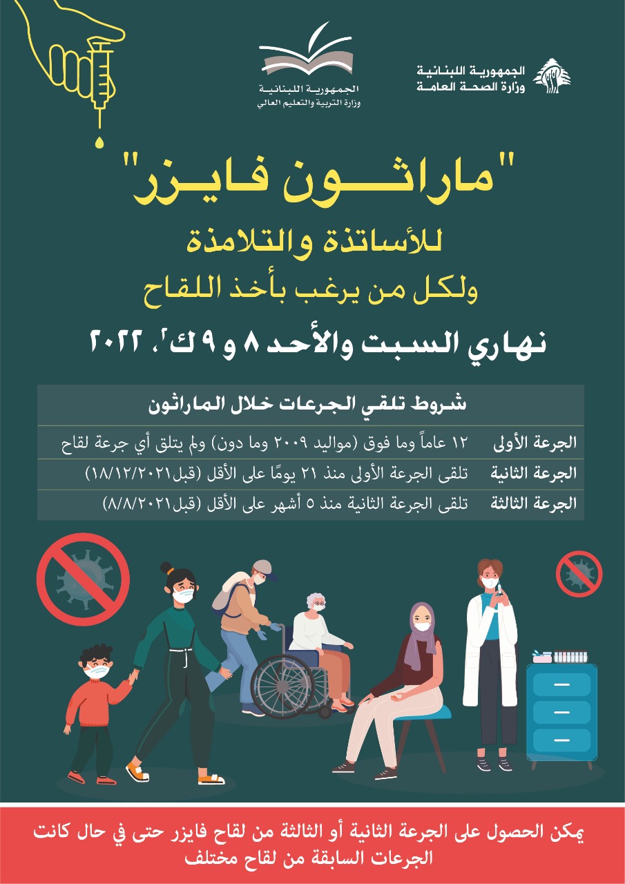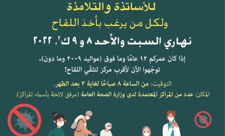 “ماراثون فايزر” ينطلق غداً.. “التربية” تحدّد مراكز التطعيم للطلاب والأساتذة
