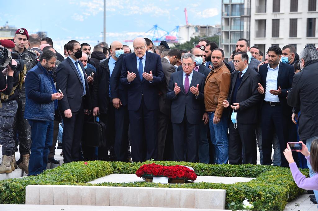 زار رئيس مجلس الوزراء نجيب ميقاتي والرئيس فؤاد السنيورة ضريح الرئيس الشهيد رفيق الحريري في وسط بيروت في ذكرى اغتياله.