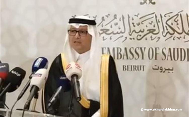 وأضاف: مرتكزات السعودية لا تسمح لها بالتدخل في الأمور السيادية ونحترم الإجراءات والاستحقاقات النيابية والرئاسية ونتمنى علىالجميع خوضها وفق الكفاءة ويهم المملكة الاهتمام باللبنانيين والانسان في لبنان.
