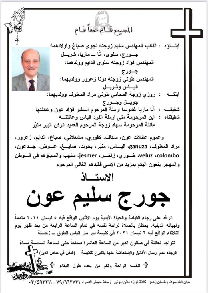 الموت يفجع النائب سليم عون توفي والد النائب سليم عون . وفاة والد النائب سليم عون 112112 للمزيد