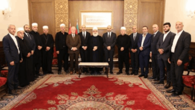 وجرى تأكيد وحدة اللبنانيين، وضرورة احتضان بعضهم لبعضهم الآخر، ولاسيما في هذه المرحلة التي يسود فيها القلق عند اللبنانيين جميعاً، ولذا ينبغي التأكيد على عودة جميع اللبنانيين وكفريق واحد متضامن إلى ما تقتضيه مصلحتهم الواحدة ومصلحة لبنان، وذلك بشروط لبنان، وبشروط الدولة اللبنانية، وليس بشروط أي طرف آخر، وهذا يعني أن تعود الدولة لتمسك بالقرار الوطني، ولتكون صاحبة السلطة الواحدة والوحيدة على كامل التراب اللبناني.