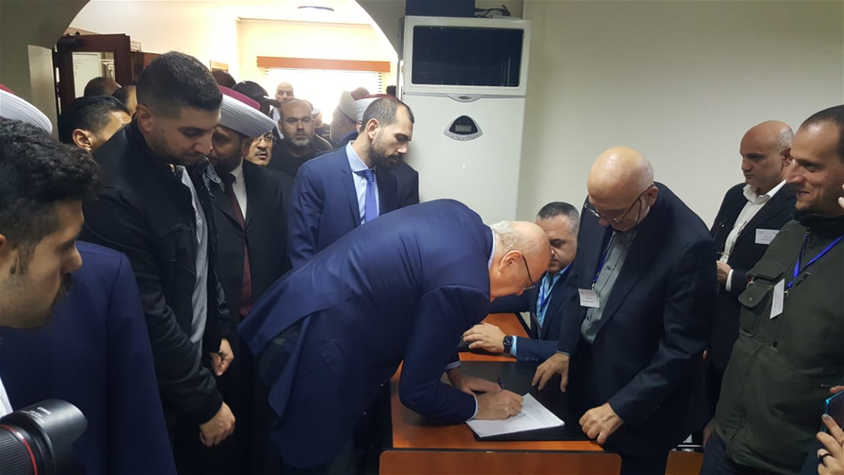 ووصل رئيس الحكومة الى دار الافتاء في طرابلس، حيث كان في استقباله نائب رئيس المجلس الاسلامي الشرعي الاعلى الوزير السابق عمر مسقاوي وقائمقام المفتي الشيخ محمد امام والمرشحون لمنصب الافتاء والمشايخ واعضاء الهيئة الناخبة.