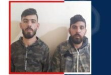 وطنية – صدر عن قيادة الجيش ـــ مديرية التوجيه، البيان الآتي: “بتاريخ 10 / 2 /2023، أوقفت دورية من مديرية المخابرات في منطقة صبرا- مدخل المخيم، المواطنَين (ف.ش.) و(م.ح.)، لوجود مذكرات توقيف بحقهما ولتأليفهما عصابة مسلحة تقوم بتعاطي المخدرات وترويجها، وتجارة الأسلحة الحربية، وافتعال الإشكالات، وفرض الخوات، وسرقة الدراجات النارية. وكان الأول قد أقدم في وقت سابق على إطلاق النار باتجاه شخص ما أدى إلى مقتله، وضُبط في حوزته مسدس حربي.
