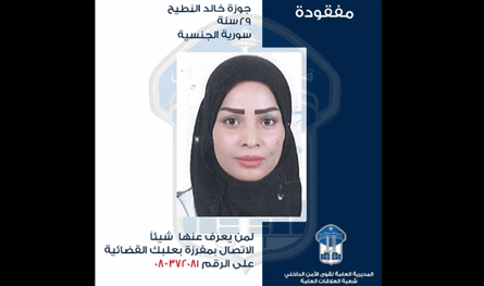 التّي غادرت منذ حوالى 7 أشهر منزلها الزّوجي الكائن في مدينة بعلبك برفقة ابنتها القاصر إلى جهةٍ مجهولة، ولم تعد لغاية تاريخه.