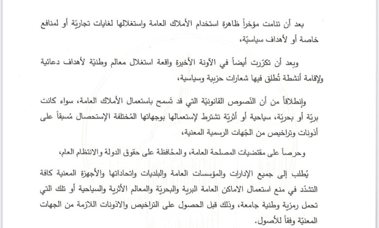 من سلام… تعميم هام بشأن الأملاك العامة والأثرية (صورة)