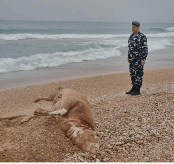 قامت فرق بلدية صيدا برفع بقرة نافقة من على الشاطىء في محيط المسبح الشعبي كان عثر عليها أمس بعدما قذفتها الأمواج الى الشاطىء.