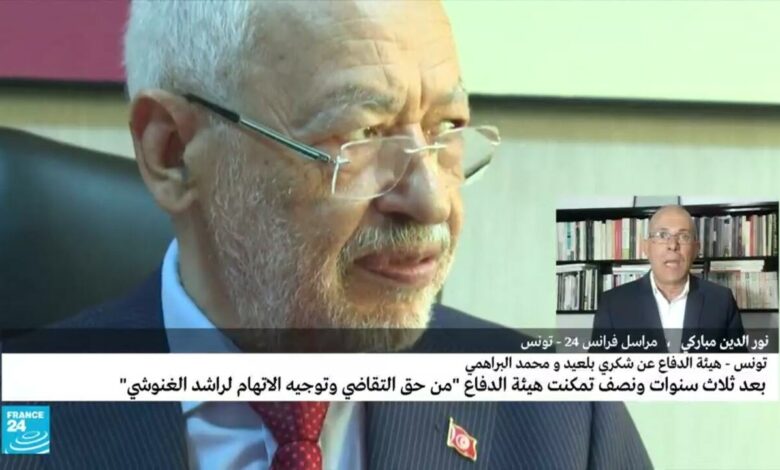 أعلنت “هيئة الدفاع عن شكري بلعيد و محمد البراهمي” أن القضاء التونسي وجه رسميا لرئيس حركة النهضة راشد الغنوشي تهمة بـ”ارتكاب جرائم تمس من أمن الدولة”. وأكدت عضو هيئة الدفاع إيمان ڨزارة إنه “بعد ثلاث سنوات ونصف تمكنت هيئة الدفاع “من حق التقاضي وتوجيه الاتهام لراشد الغنوشي من أجل ارتكاب جرائم تمس من أمن الدولة”. وتجدر الإشارة إلى أن القضاء التونسي أصدر في وقت سابق قرارا بتحجير السفر على مجموعة من المتهمين في قضية “الجهاز السري” لحركة النهضة من بينهم رئيس حركة النهضة راشد الغنوشي.