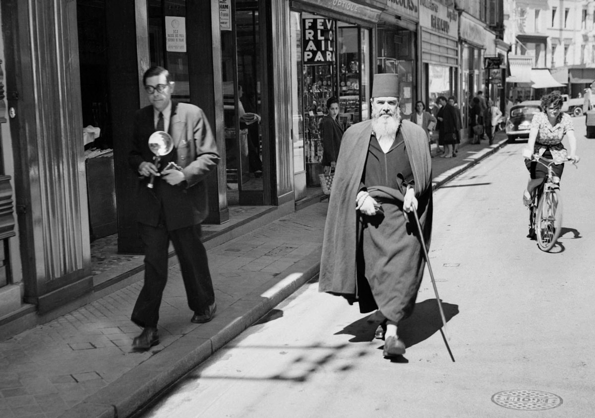 مصالي الحاج في شوارع مدينة نيور حيث كان رهن الإقامة الجبرية. 17 مايو/أيار 1952. © أ ف ب