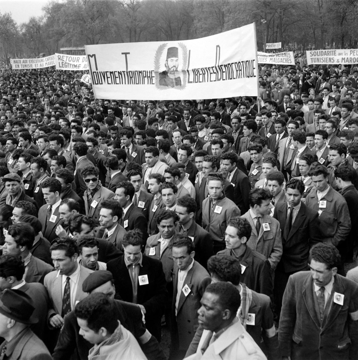مناضلو حركة انتصار الحريات الديمقراطية خلال مظاهرة في باريس. 1 مايو/أيار 1954. © أ ف ب.