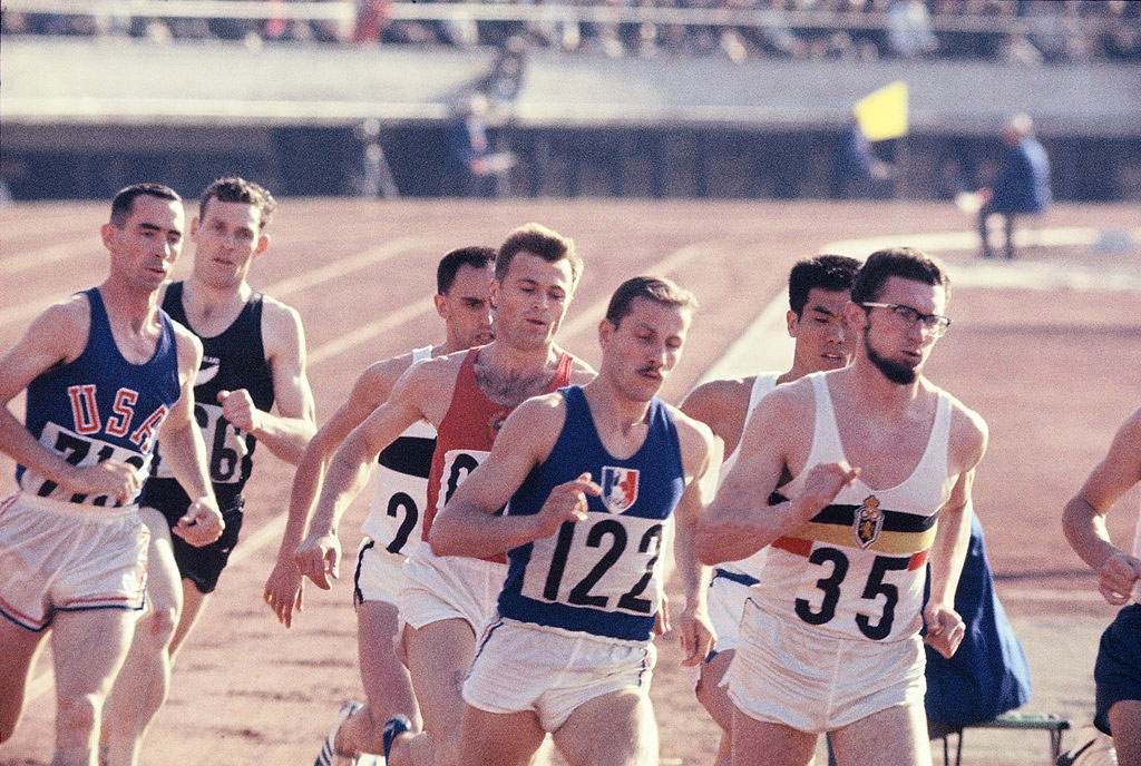 موريس ليرو (صاحب الرقم 122 في الصورة) خلال نصف نهائي سباق 800 متر رجال خلال الألعاب