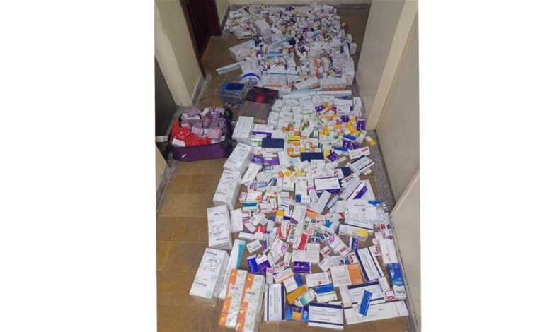 بتفتيش الشقّة، تمّ ضبط كمية كبيرة من الادوية المهربة، ومن بينها ادوية باهظة الثمن.
