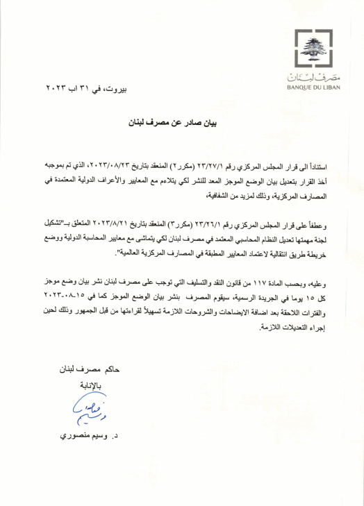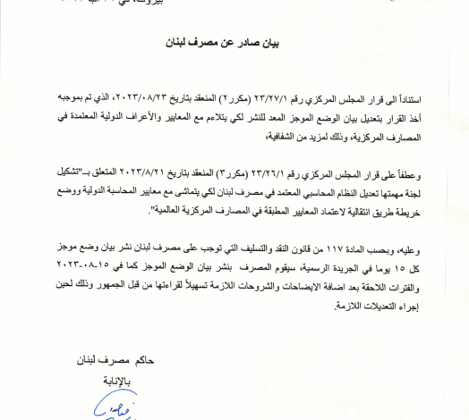 صدر عن حاكم مصرف لبنان بالإنابة وسيم منصوري البيان التالي: Advertisement مصدر الخبر للمزيد Facebook