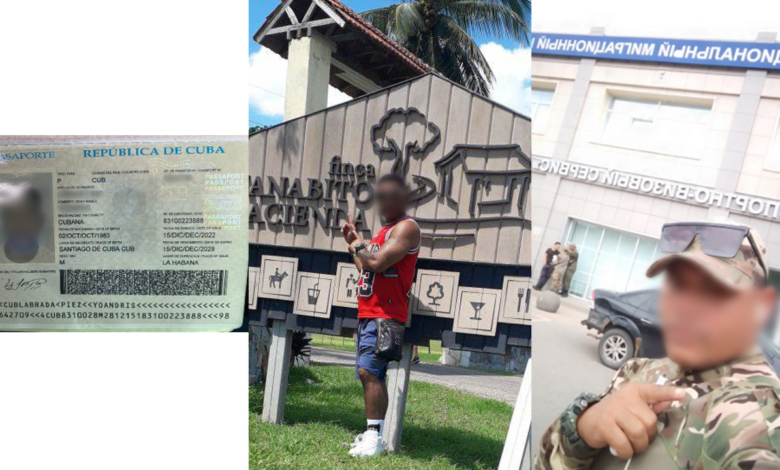 على اليسار، صورة لجواز سفر مرتزق كوبي تعرف عليه قراصنة رقميون موالون لأوكرانيا. على اليمين، صورة نشرت على حسابه في فيس بوك في 7 آب/أغسطس 2023. صورة مراقبون