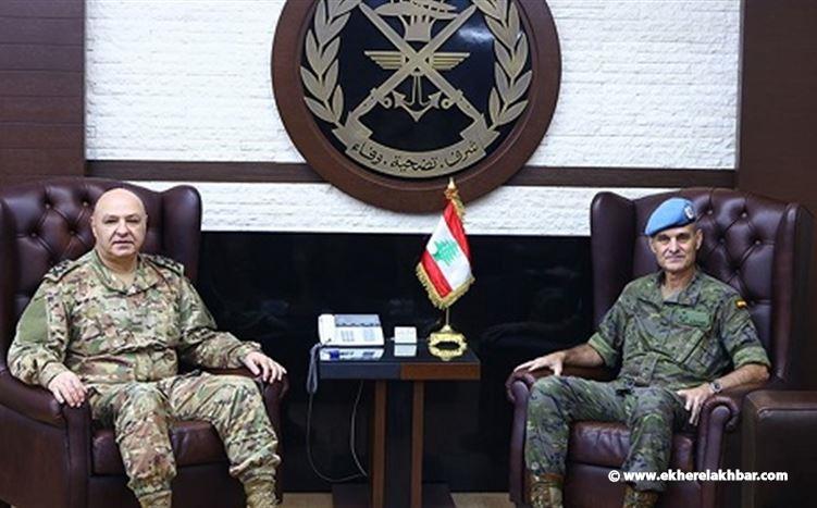 ثم استقبل قائد قوّة الأمم المتحدة الموقّتة في لبنان اللواءAroldo Lázaro ، وتناول البحث التعاون والتنسيق بين الجيش واليونيفيل في ظل الوضع الراهن في الجنوب. كما استقبل مديرة مكتب برنامج الأمم المتحدة الإنمائي UNDP في لبنان السيدة Melanie Hauenstein، وتم التداول في الأوضاع العامّة في البلاد.