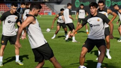 ويواجه تشافي هيرنانديز المدير الفني، احتمال غياب 6 من لاعبيه عن مواجهة ضيفه “سان جيرمان”، في حال حصولهم على بطاقة صفراء خلال لقاء الذهاب، بحسب ما ذكرته شبكة “كانال سبورتر” الفرنسية. وهم: لامين يامال، رونالد أراوخو، فرينكي دي يونغ، فيران توريس، سيرجي روبيرتو، جواو فيليكس، فيما يسابق دي يونغ وبيدري، لاعبا الوسط، الزمن للتعافي من إصابات مختلفة قبل مواجهة “سان جيرمان”.