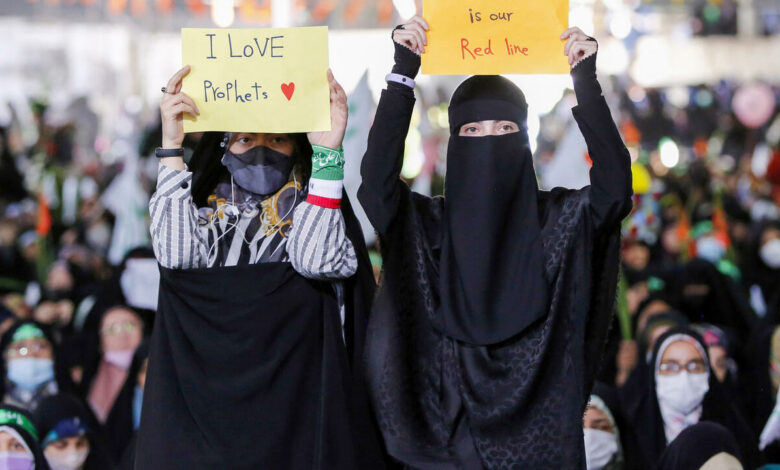 شهدت عدة دول آسيوية الجمعة مظاهرات حاشدة تنديدا بتصريحات الناطقة الرسمية باسم الحزب الحاكم في الهند، اعتبرت “مسيئة” للنبي محمد. وفي محاولة لاحتواء الأزمة، علق حزب بهاراتيا جاناتا عضوية المسؤولة مؤكدا في نفس الوقت احترامه لكل الأديان. وليست هذه المرة الأولى التي تثير فيها تصريحات عن النبي محمد أو رسوم له غضبا في صفوف المسلمين، ولعل أبرز مظاهر ذلك احتجاج مئات الآلاف في عدد من الدول الإسلامية على رسوم ساخرة لمجلة “شارلي إبدو” الفرنسية، تسببت في أزمة بين فرنسا وعدد من الدول الإسلامية.