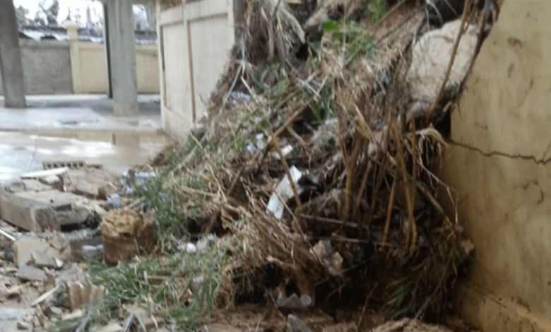 إنهيار حائط طريق في المنية بسبب السيول