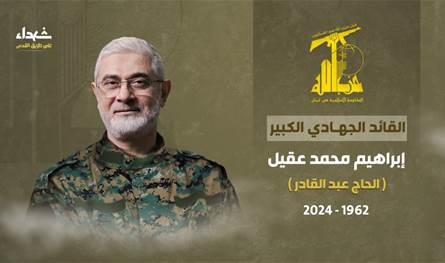 القسام تعزي الحزب باستشهاد ابراهيم عقيل: فلسطين لن تنسى كل من وقف إلى جانبها وساندها