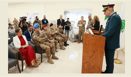 وجاء في البيان أن التبرع شمل نحو 30 طنًا من المستلزمات الطبية بقيمة تقارب مليون ونصف المليون يورو، تضمنت أسرّة مستشفيات، خزائن، ملابس واقية، إبر ومحاقن، أدوات جراحية، كراسي متحركة، معدات طب العيون، كراسي طب الأسنان، وأجهزة مشي للمسنين. وأكد البيان أن هذه المعدات ستسهم في تحسين الخدمات الطبية والصحية للجيش، مشيراً إلى أن هذا التبرع يُعد الأكبر الذي تقدمه إيطاليا للبنان خلال السنوات الأخيرة.