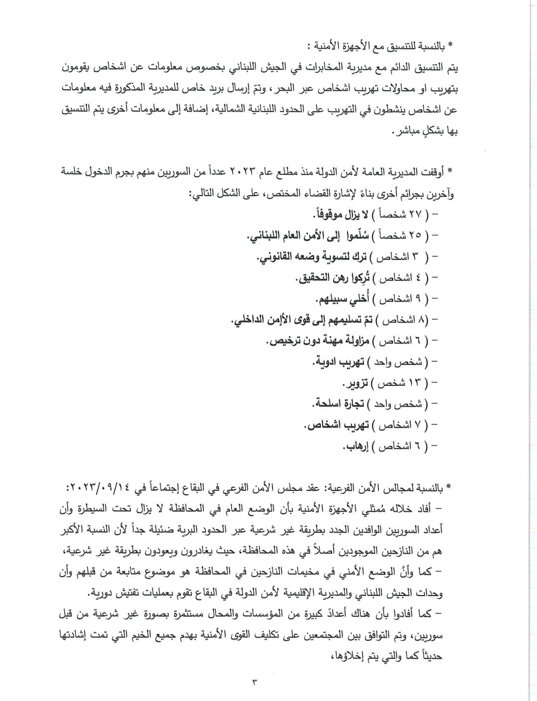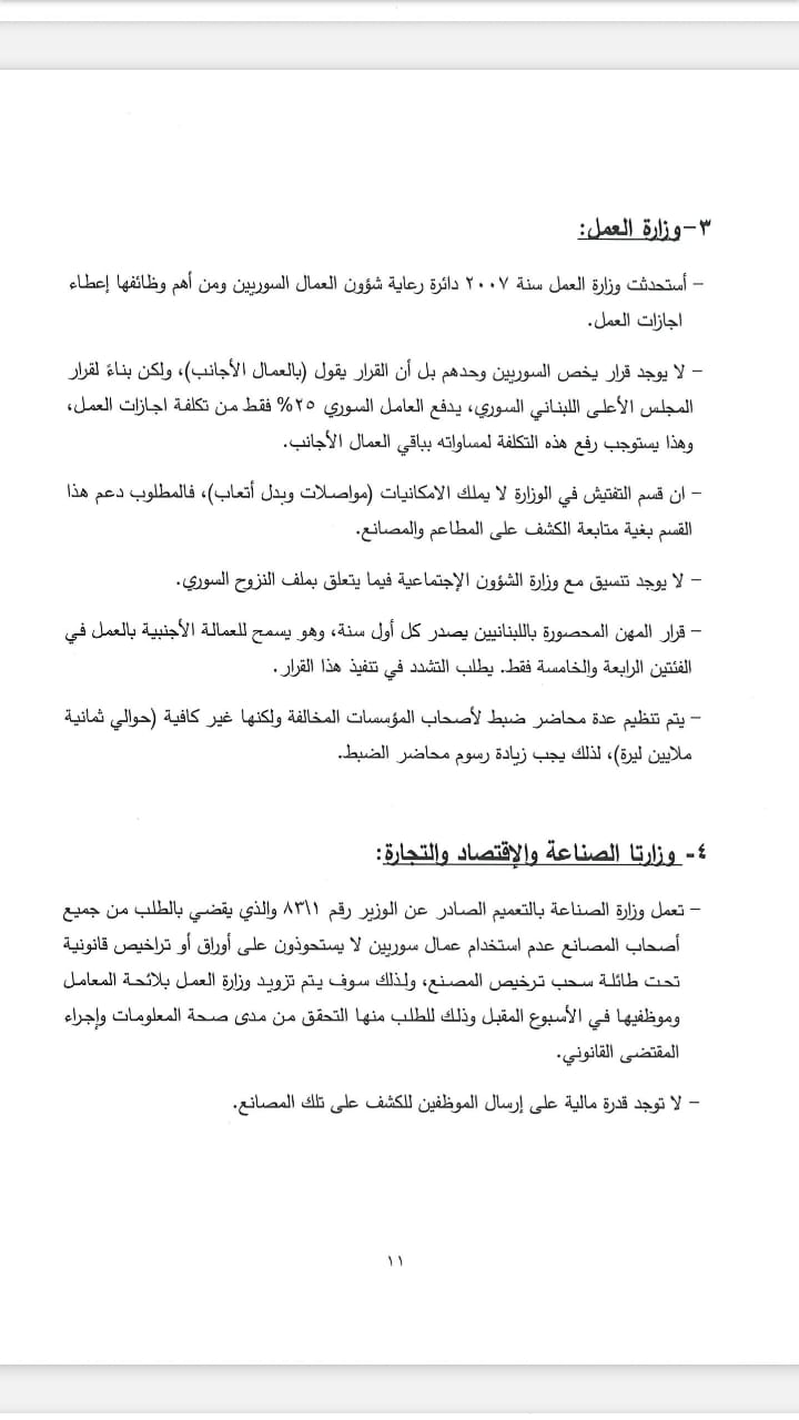 يناقش مجلس الوزراء الخميس المقبل تقريرا عن النازحين السوريين هنا نصه: