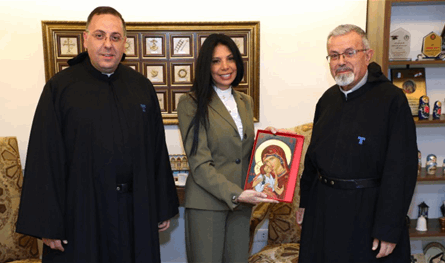 وفي ختام الزيارة، قدّم الأب عازار والأب بوعبود للسيدة هيكل أيقونة “والدة الإله” عربون محبة وتقدير.