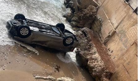في منطقة لبنانية.. سيارة تسقط على شاطئ (صورة)