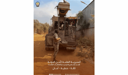 “متابعةً لجهودها في مكافحة التعديات على الموارد المائية، وبتاريخ ٢٠٢٥/٨/٢٣، قامت مديرية عكار الإقليمية في أمن الدولة – قسم الإستعلام والتحقيق، بضبط وختم بالشمع الأحمر حفّارة آبار ارتوازية في محلة البحصة – عكار، تعود للبناني (م.ن.)، لقيامه بحفر الآبار الإرتوازية في محافظة عكار بطريقة غير قانونية ودون ترخيص. وقد تبيّن من خلال الإستقصاءات والتحريات أنّ صاحب الحفّارة كان قد نقلها من منطقة فنيدق – جرد القيطع إلى منطقة البحصة بغية تخبئتها. أُجري المقتضى القانوني بحقّه بناءً لإشارة القضاء المختص”.