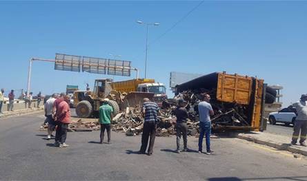 انقلبت بعد ظهر اليوم الإثنين، شاحنة على الطريق العام الذي يربط بين بلدتي قناريت والغازية، مما أدى إلى إصابة سائقها بجروح.