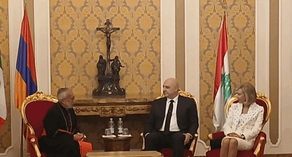 الرئيس عون زار فور وصوله، المدرسة الحبرية الأرمنية والتقى بطريرك الأرمن الكاثوليك روفائيل بدروس الحادي والعشرين ميناسيان، الذي منح رئيس الجمهورية “وسام صليب الإيمان”، وهو الأعلى في البطريركية.
