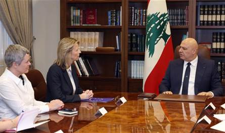ابلغ رئيس الجمهورية العماد جوزف عون، الممثلة الخاصة للاتحاد الأوروبي لحقوق الانسان السيدة Kajsa Ollongren خلال استقباله لها قبل ظهر اليوم في قصر بعبدا، في حضور سفيرة الاتحاد الأوروبي في لبنان السيدة Sandra De Waeleان لبنان يرحب باي دعم يقدمه الاتحاد الأوروبي في مختلف المجالات لا سيما بعد انسحاب القوات الدولية العاملة في الجنوب”اليونيفيل” خلال العام 2027، مؤكدا ان الحضور الأوروبي في الجنوب سيكون عاملا إيجابيا خلال استكمال الجيش اللبناني انتشاره في منطقة جنوب الليطاني حتى الحدود الدولية، إضافة الى رمزية مثل هذا الوجود الذي يساعد أيضا على متابعة كل الترتيبات الخاصة بانسحاب الجيش الإسرائيلي من الأراضي التي يحتلها.