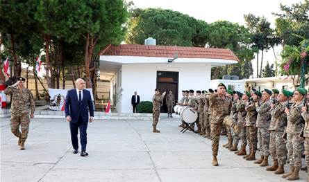 وكان سبق الزيارة توجيه قائد الجيش أمر اليوم إلى العسكريين، حيث قال “لقد بذل الجيش جهوداً جبارةً منذ دخول اتّفاق وقف الأعمال العدائية حيّز التنفيذ، رغم الإمكانات المحدودة والصعوبات الناتجة عن الأزمة، لتطبيق خطّته وتعزيز انتشاره في قطاع جنوب الليطاني، وبسط سلطة الدولة على جميع أراضيها تنفيذاً لقرار الحكومة اللبنانية، والالتزام بالقرار 1701 ومندرجاته كافة، بالتنسيق الوثيق مع قوّة الأمم المتحدة الموقتة في لبنان – اليونيفيل، ولجنة الإشراف على اتّفاق وقف الأعمال العدائية.في هذا السياق، قدّمت المؤسسة العسكرية تضحياتٍ جساماً، ووقع العديد من عناصرها شهداء وجرحى على مذبح الوطن، وصمدت في مواقعها رغم الظروف الخطيرة، للمحافظة على حق لبنان في السيادة على كل شبر من أرضه، وهي لن تتوانى أو تبخل بأي جهدٍ أو قطرة دمٍ لتحقيق هذه الغاية، إضافة إلى دعم عودة النازحين إلى قراهم. هذه الجهود تستلزم مواكبة حثيثة من مؤسسات الدولة، ضمن إطار جهدٍ وطني شامل، وتوفير الإمكانات، وتحسين أوضاع العسكريين، وتهيئة الظروف الضرورية لاستعادة الاستقرار. إنَّ القيادة مُدرِكَة تماماً للأوضاع الاستثنائية المحيطة بتنفيذ خطّة الجيش، التي تسير وفق البرنامج المحدّد لها، وهذه الظروف تستلزم أعلى درجات الحكمة والتأنّي، والحزم والاحتراف، بما يخدم المصلحة الوطنية والسلم الأهلي، بعيدًا عن أي حسابات أخرى”.